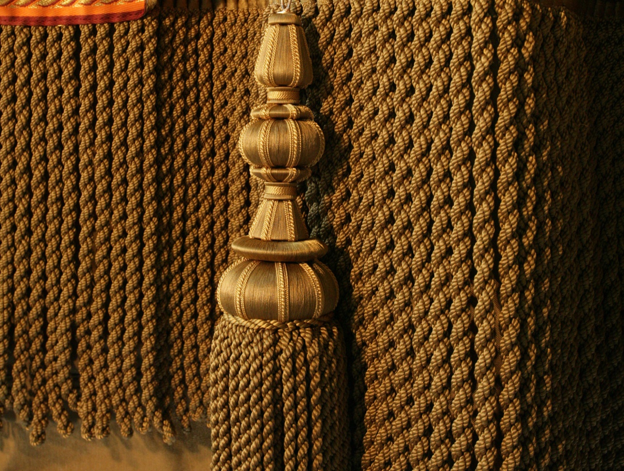 • Raffhalter (Tiebacks): Es wurden über 50 handgefertigte Raffhalter angebracht. Jeder ist 52 cm lang und wiegt etwa 3 kg.